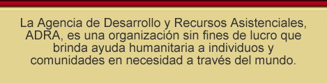 La Agencia de Desarrollo y Recursos Asistenciales, ADRA, es una organización sin fines de lucro que brinda ayuda humanitaria a individuos y comunidades en necesidad a través del mundo.