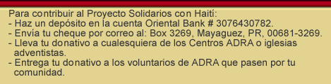 ADRA sostiene un programa de ayuda humanitaria en Haití. ADRA instaló un sistema de purificación de agua que provee agua potable a los cerca de 30,000 individuos que actualmente viven en los terrenos de la Universidad Adventista en Haití. Antes de que se instalara este sistema, [Leer Más]